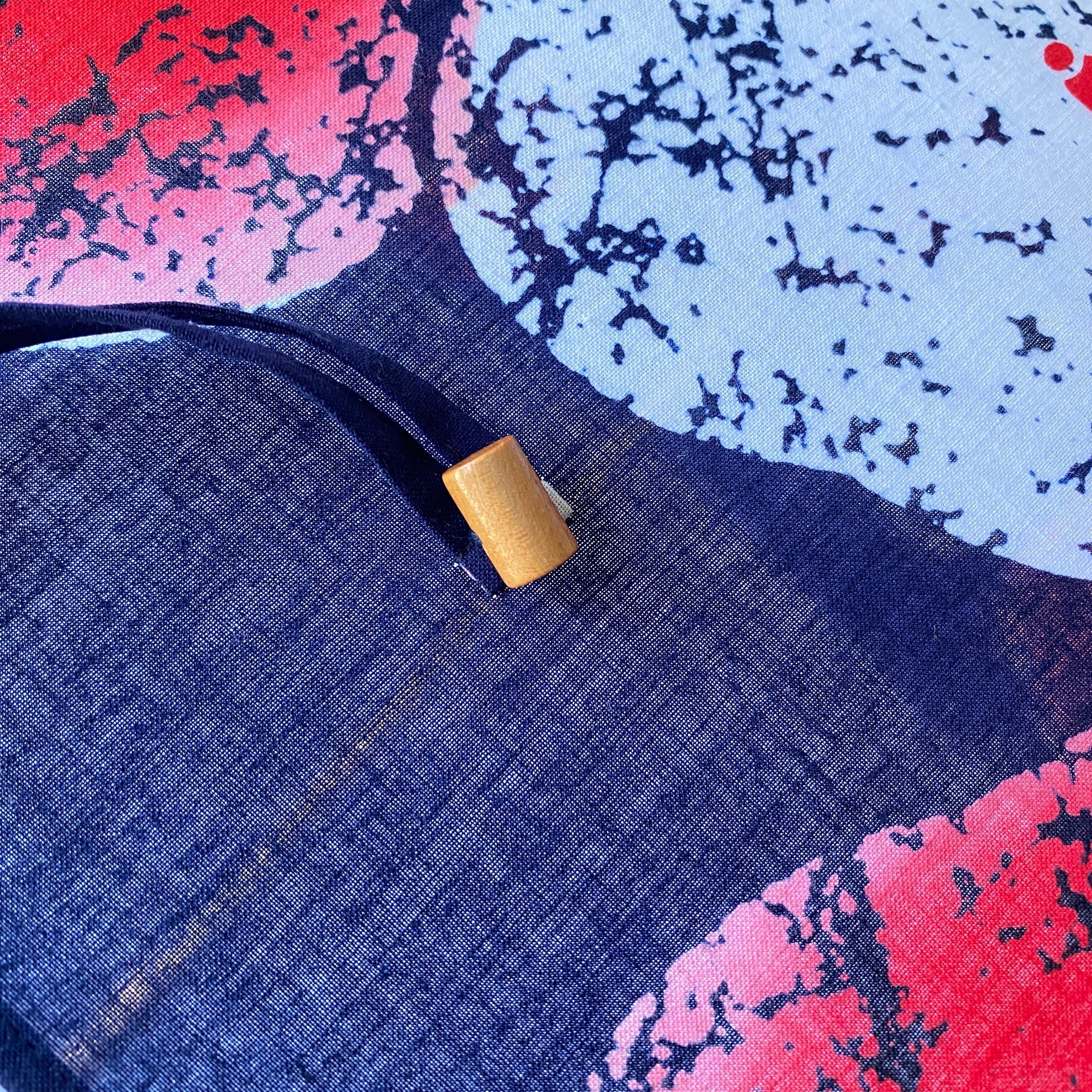 浴衣の反物から作った日傘 クロス型 椿 濃紺