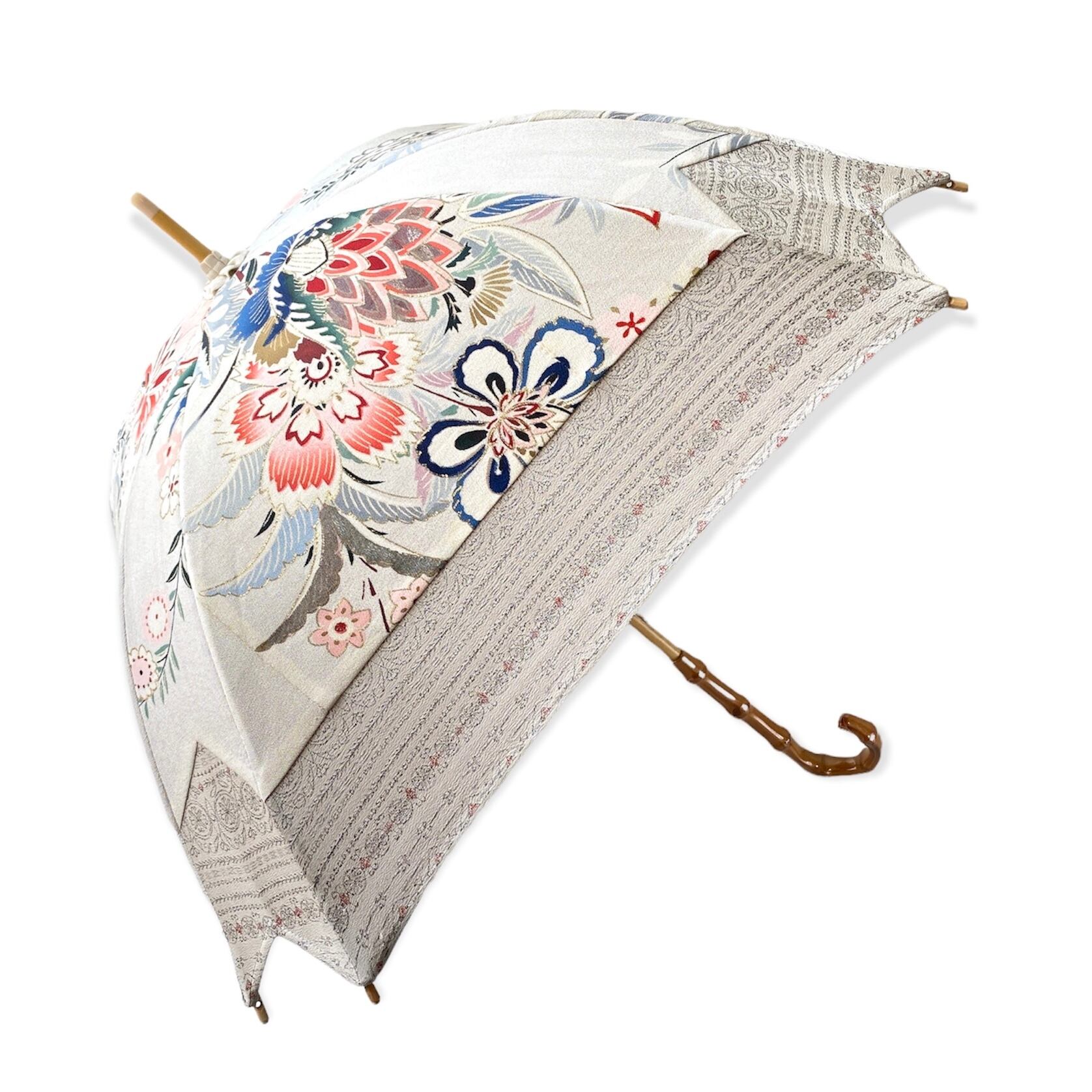 お洒落な裏地付き!着物地の日傘クロス型 淡いグレー系 一点ものonly one 長傘 付下げ