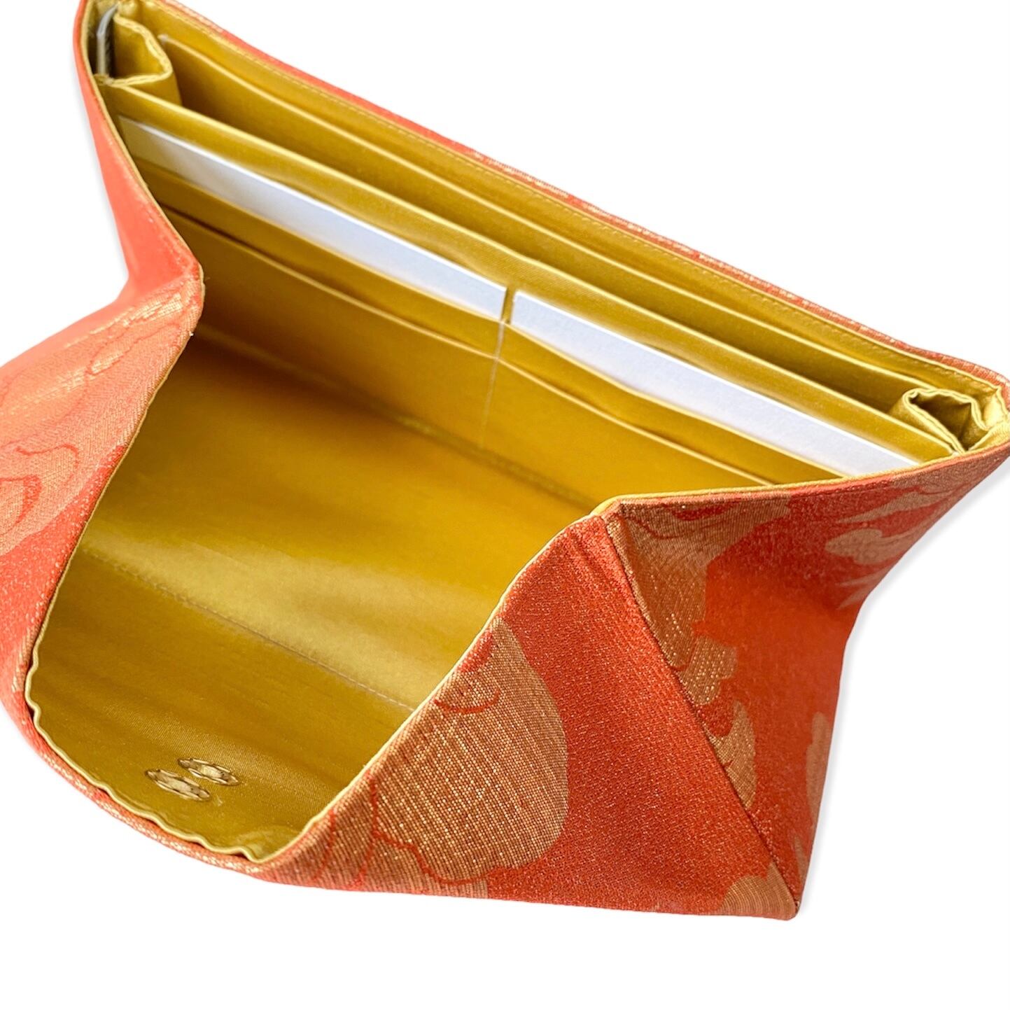 美しい袋帯から作った長財布です。小銭が見やすいギャルソンウォレットです。お財布としてではなく筆記用具やハサミなど小物を入れてもいいと思います。