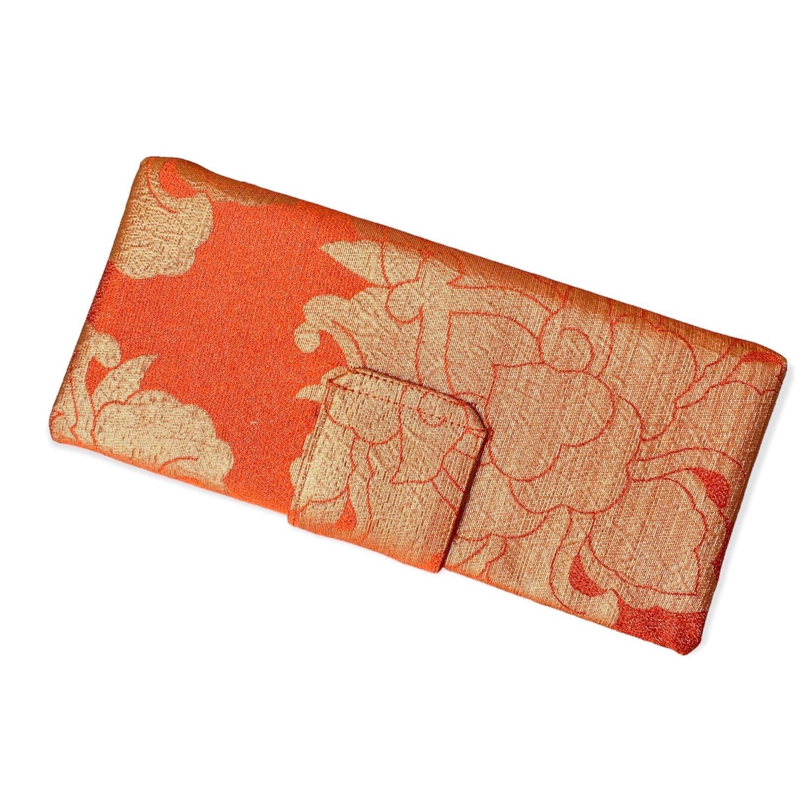 帯地のギャルソンウォレット 長財布 赤系 小物入れとしても◎