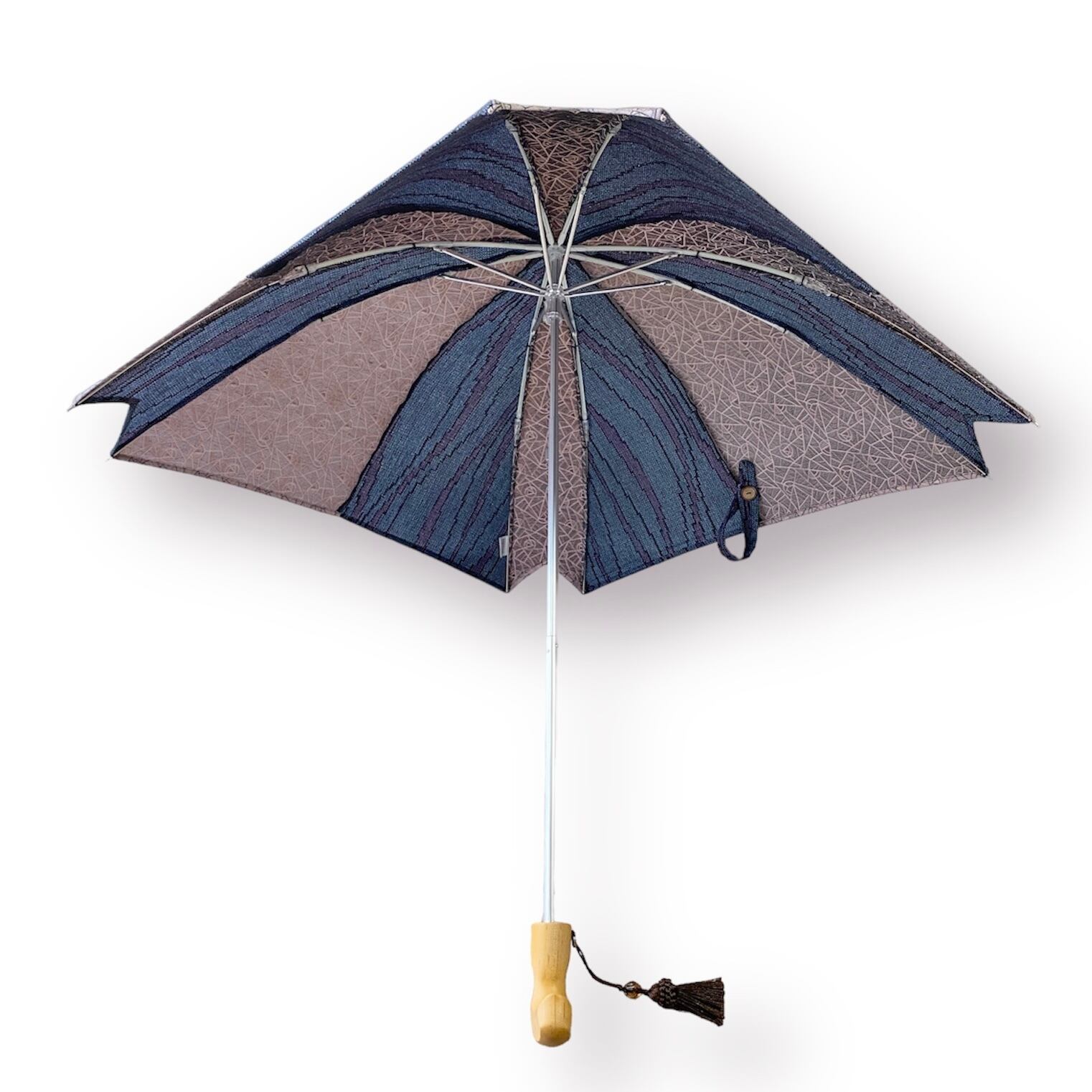 折たたみ 着物地の日傘クロス型 スクエア 紺×ベージュ